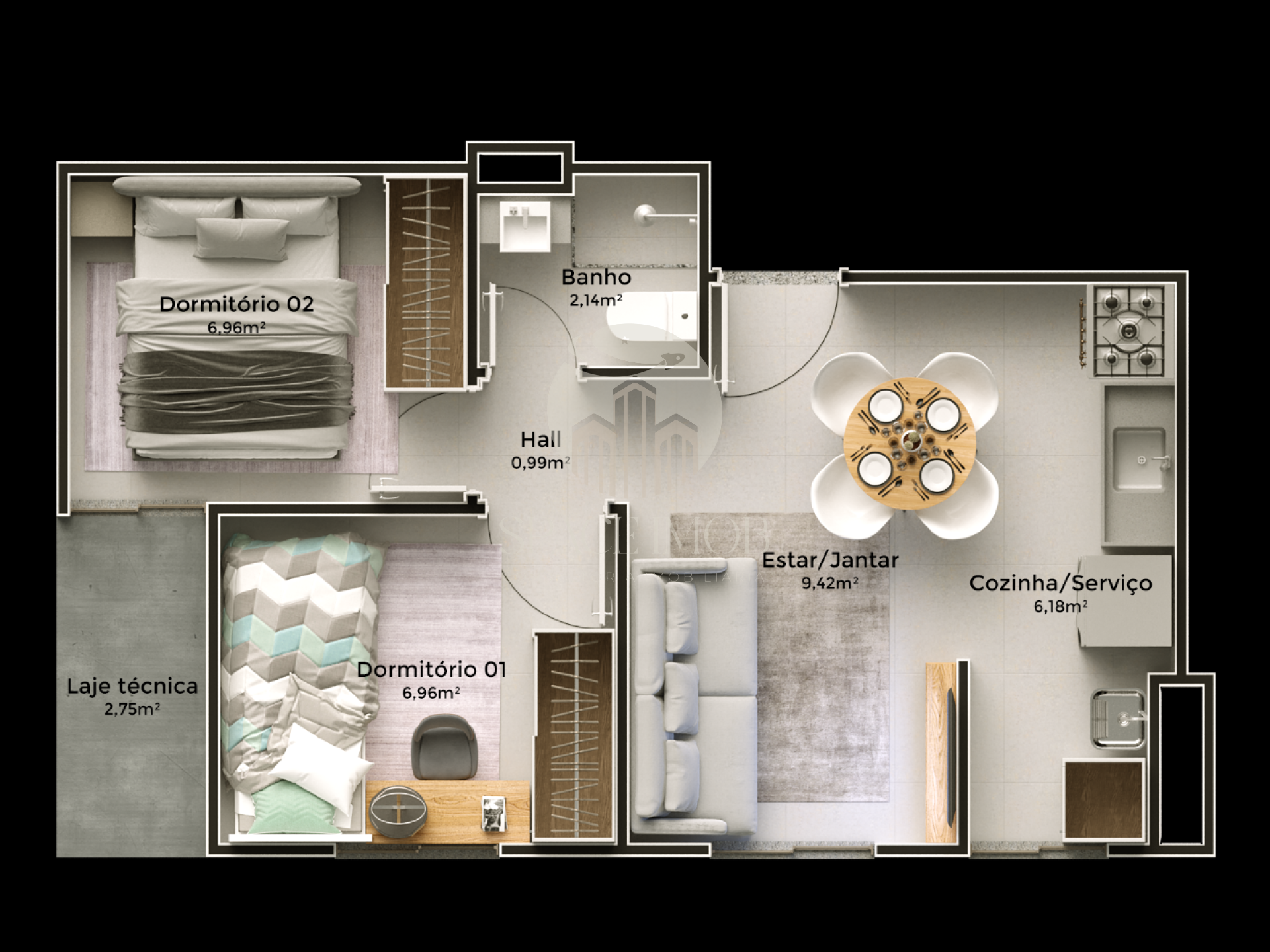 2 Quartos 1 Banheiro 0 ou 1 Vaga