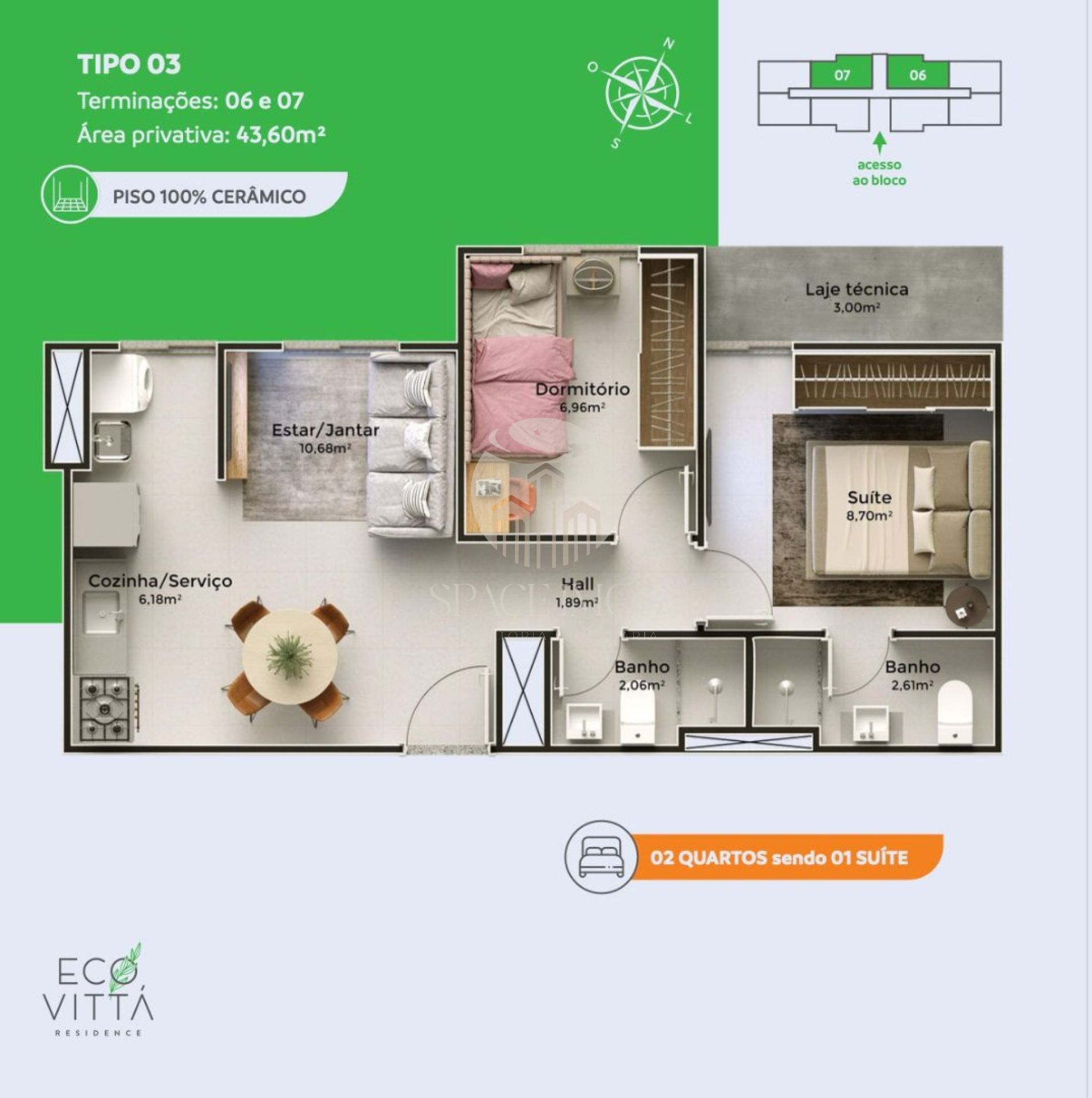 ECO VITTÁ RESIDENCE é um lançamento da Rocha Empreendimentos. Apto com 2 quartos e área de lazer completa.